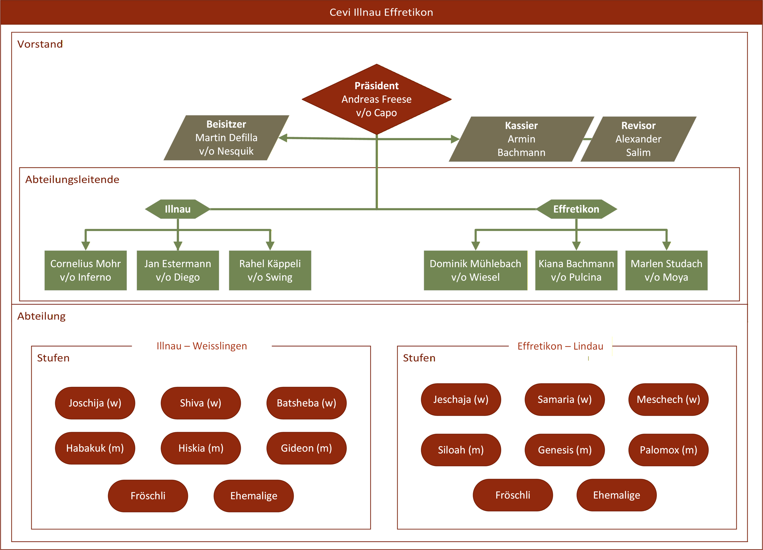Der Cevi Illnau-Effretikon besteht seit 1975 und zählt circa 300 Mitglieder. Der Verein gliedert sich in die beiden Ortsgruppen (Abteilungen) Illnau und Effretikon. Geleitet wird der Verein durch den Vorstand, dem auch die AbteilungsleiterInnen angehören.